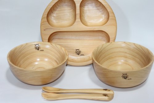 瑞苑はもともと林業家です。そこで林業家の「もったいない」の心で始まったのが木工部です。 奈良の山深い地で、木製食器を完全手作りで製作販売している工房です。主に赤ちゃんのお食い初め用セットや、子供用食器などが人気です♪ 赤ちゃんからおじいちゃんおばあちゃんまで、誰もが安心して使っていただける木の食器・木のカトラリーを、心を込めてお作りしています。 お子様の食育にも自信を持っておすすめ致します。素敵な木の器との出会いが待っているかも知れません・・・!? 自然のまんま木の温もりをと、更に子供にやさしい、安全なのをと考え開発した木の呼吸を妨げなく大自然の香がするガラスウッドコートから12年。 材料の檜、杉などは、農薬、漂白剤などは一切使用していません、自然のまんまです。 人肌程度の温かさ、これが木のぬくもりなんですね、きっと!って言っていただける器たちをお届けいたします。 ★★★絵入れ、名前入れ料金のご案内★★★ 木固め剤のようなものは、まったく使わず、ガラスウッドコートだけを使っておりますので、 磨き残しのような後もございますし、塗りむら、少し歪かも知れません。 あくまでも、安全性と自然の温もりを追求いたしました。 また、木は生き物、コーティングしていてもひびが入ることもございます、ご理解、ご了承お願いいたします。