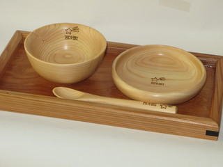 セットの杉のトレイは、デザートプレート、オードブルプレートとして使って頂けます。 瑞苑はもともと林業家です。そこで林業家の「もったいない」の心で始まったのが木工部です。 奈良の山深い地で、木製食器を完全手作りで製作販売している工房です。主に赤ちゃんのお食い初め用セットや、子供用食器などが人気です♪ 赤ちゃんからおじいちゃんおばあちゃんまで、誰もが安心して使っていただける木の食器・木のカトラリーを、心を込めてお作りしています。 お子様の食育にも自信を持っておすすめ致します。素敵な木の器との出会いが待っているかも知れません・・・!? 自然のまんま木の温もりをと、更に子供にやさしい、安全なのをと考え開発した木の呼吸を妨げなく大自然の香がするガラスウッドコートから12年。 材料の檜、杉などは、農薬、漂白剤などは一切使用していません、自然のまんまです。 人肌程度の温かさ、これが木のぬくもりなんですね、きっと!って言っていただける器たちをお届けいたします。 ★★★絵入れ、名前入れ料金のご案内★★★ 木固め剤のようなものは、まったく使わず、ガラスウッドコートだけを使っておりますので、 磨き残しのような後もございますし、塗りむら、少し歪かも知れません。 あくまでも、安全性と自然の温もりを追求いたしました。 また、木は生き物、コーティングしていてもひびが入ることもございます、ご理解、ご了承お願いいたします。