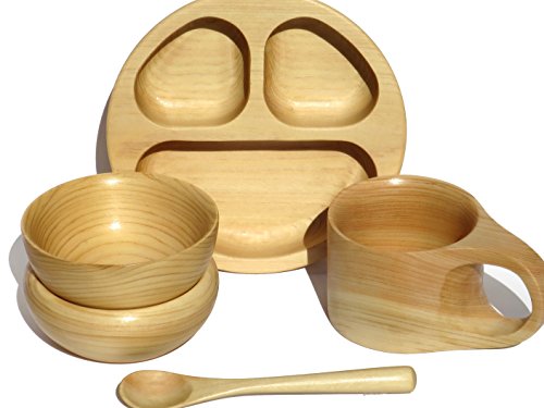 津田瑞苑 お食い初めセット ボウル2個&仕切りプレート&マグ&スプーン 離乳食時期から3歳ぐらい 檜製