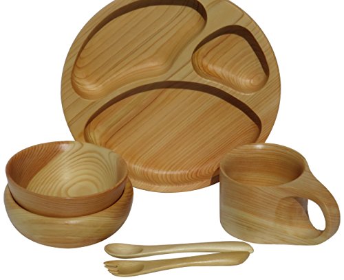 津田瑞苑 お食い初めセットボウル2個 &仕切りプレート大&マグ&スプーン・フォーク 離乳食時期から小学校低学年 檜製