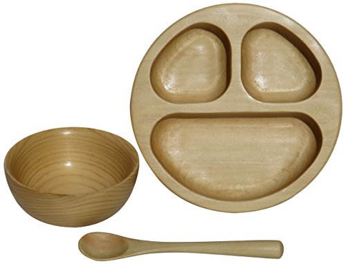 津田瑞苑 お食い初めセット ボウル&仕切りプレート&スプーン 離乳食時期から3歳ぐらい 檜製