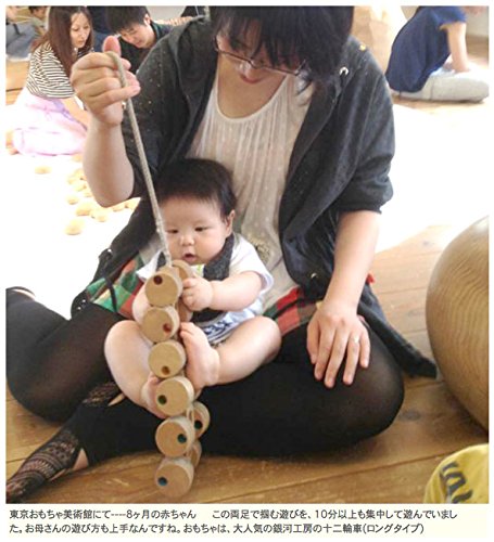 - ロープを引くとカラカラと軽い音がして、12個の車輪がそれぞれユーモラスに回転します。進行方向に転がる車輪と逆に転がる車輪の動きは、子供でなくても思わず手を伸ばしたくなります。