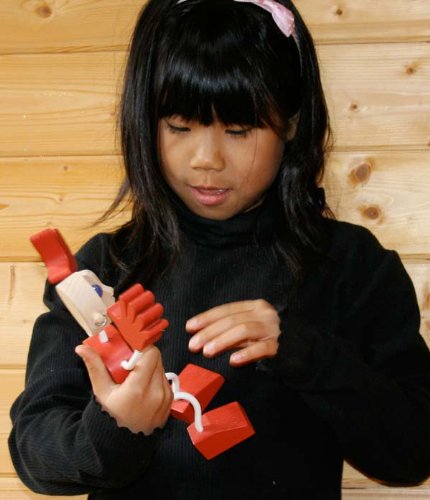 - この木の人形は自由自在にポーズを変えて楽しむことができます。体操選手のように片手倒立なども得意技のひとつです。遊ぶ人のバランス感覚ややさしい情緒を育てます。