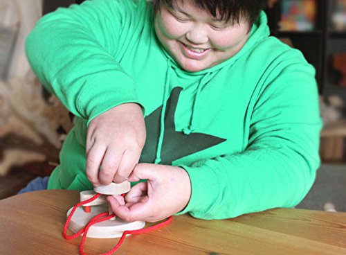 立体的な感覚を使って楽しみながら右脳を働かせるところに意味があります。 ひもはかならず抜く事ができます。すぐにできなくても励ましてあげて下さい。