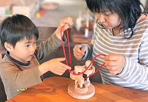 立体的な感覚を使って楽しみながら右脳を働かせるところに意味があります。 ひもはかならず抜く事ができます。すぐにできなくても励ましてあげて下さい。