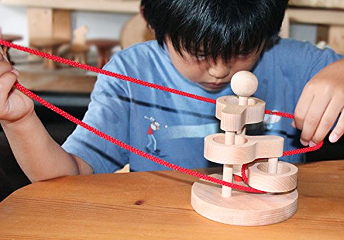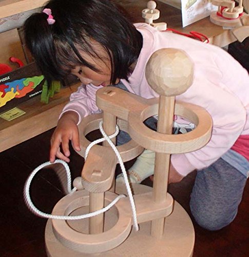 - 人間の脳は左右バランスよく使うことが大切で、健康にもよいとされています。このパズルはひもを抜き取るだけの単純な遊びですが、立体的な感覚を必要とし、楽しみながら脳を刺激します。