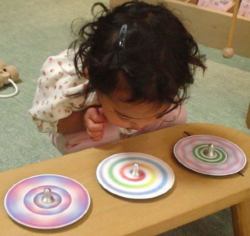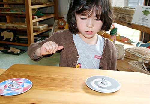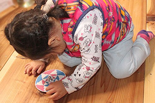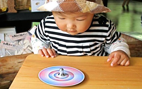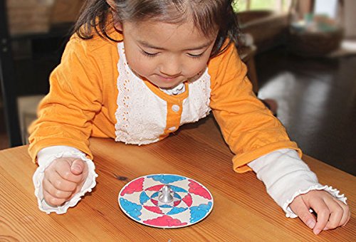 - この独楽は形・デザインに工夫が凝らされ、だれでも簡単に回すことができ楽しい色遊びが体験できます。