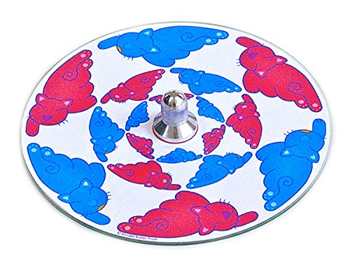- 青と赤のかわいい猫が描かれています。回さなくてもおもしろい独楽です。この独楽は回転し始めると赤と青が溶け合って紫色の美しいグラディーションを作り出します。