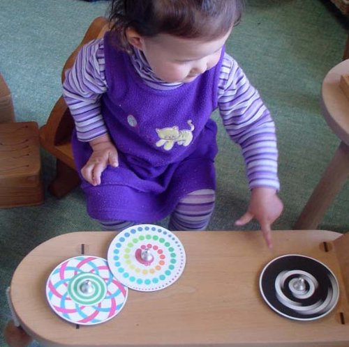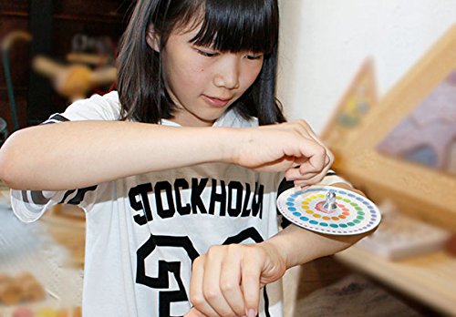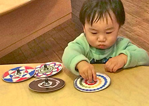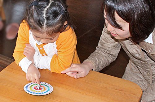 - この独楽は形・デザインに工夫が凝らされ、だれでも簡単に回すことができ楽しい色遊びが体験できます。