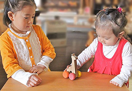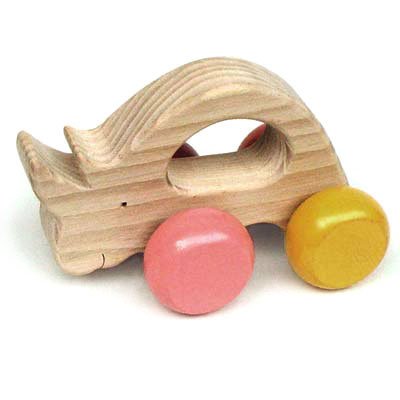 ゆかいな動物の車です。手ざわりが気持ちよく。使いこむほどにつやが出ます。 手にもって振るとカタカタと優しい木の音がします。