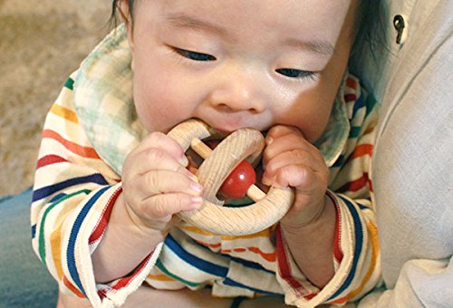 - おしゃぶりにも、歯がためにも、ラトル(がらがら)にもコマにもなるおもちゃです。