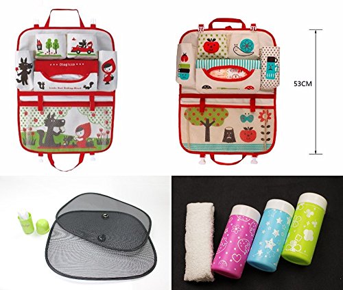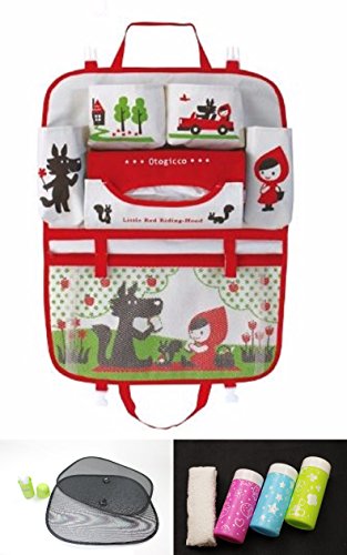 【未来ワールド】 MW-83 ドライブポケット おでかけポケット 車内収納 & おしぼりケース & おしぼり & ポータブルサンシェード 4点セット (赤ずきんちゃん)
