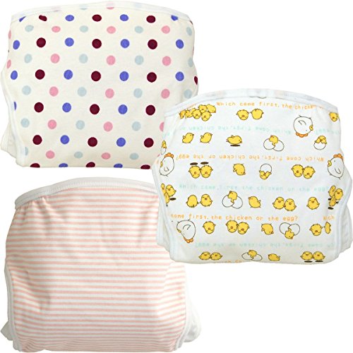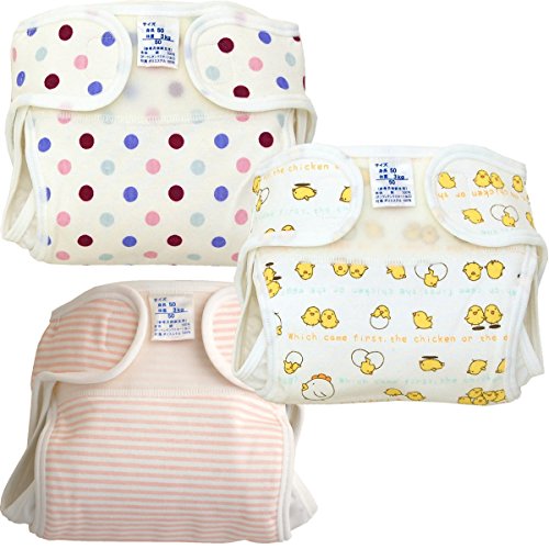 新生児用おむつカバー 3枚組 ボーダー・ドット・ひよこ柄 日本製 (50cm,女の子)