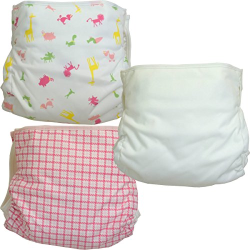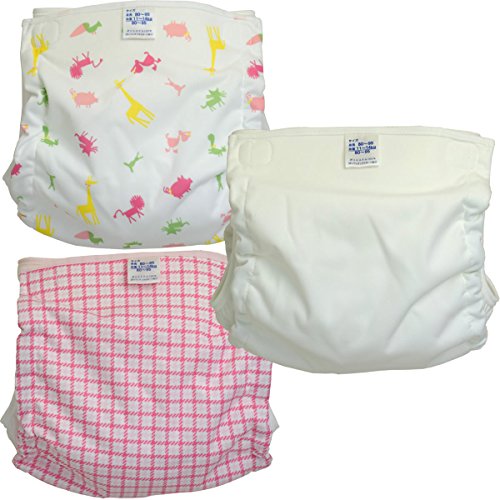ベビー用おむつカバー フリーサイズ 3枚組 アニマル・チェック・無地 日本製 (女の子,80-95cm)
