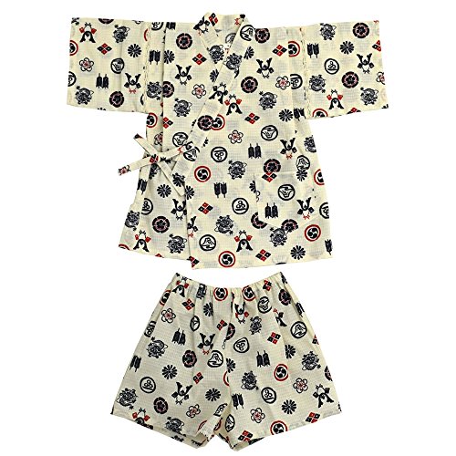 甚平スーツ 紋に兜柄 綿紅梅 日本製(100cm,白)