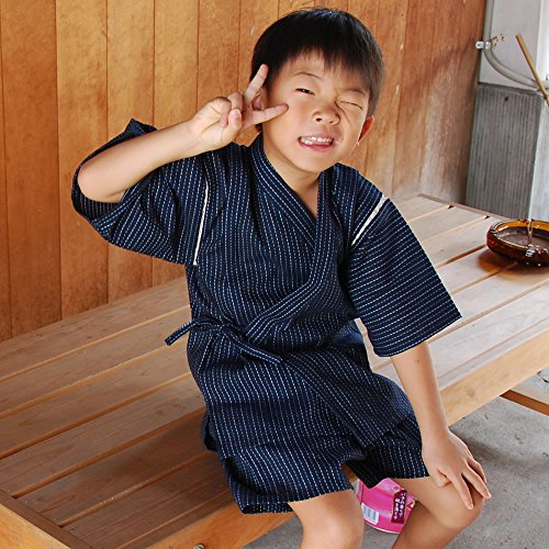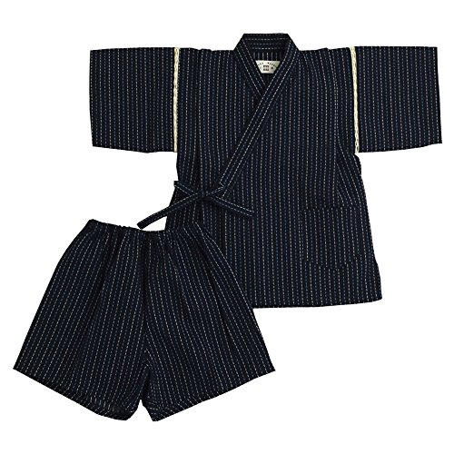 甚平スーツ 刺し子織柄 日本製(100cm,ネイビー)