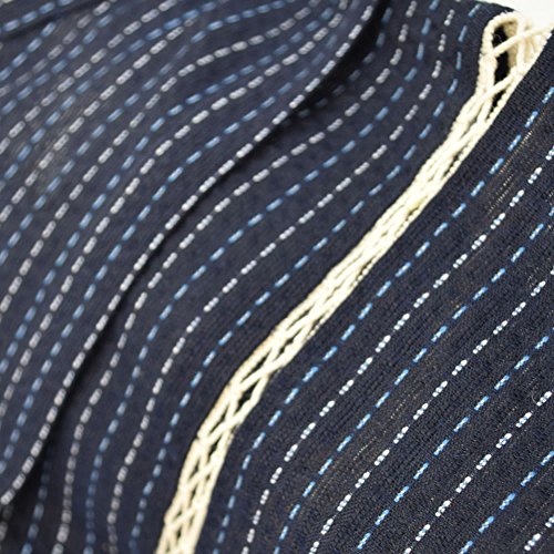 経糸と横糸の交差の中に、太い刺し子糸をあわせて その模様を表現した織物です。