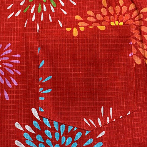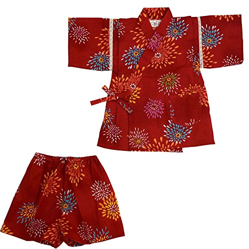 甚平スーツ 花火柄 綿紅梅 日本製 レッド 100cm