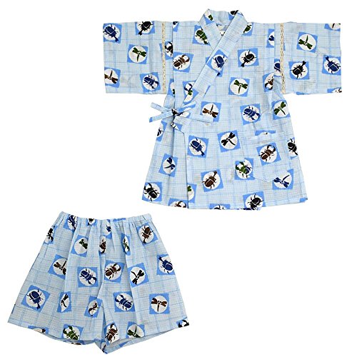 甚平スーツ 昆虫柄 綿紅梅 日本製 サックス 100cm