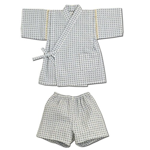 甚平スーツ刺し子格子柄 日本製(110cm,ホワイト)