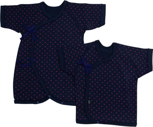 Anna Nicola(アンナニコラ) 新生児用短肌着 コンビ肌着セット 水玉柄 (50-60cm, ネイビー)