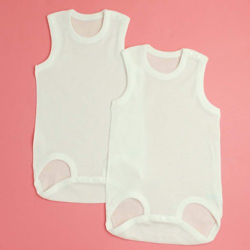 ラ・モルフェ フライス肩ボタン 袖なしボディスーツ2枚組 ベビー肌着 (70cm, ホワイト)