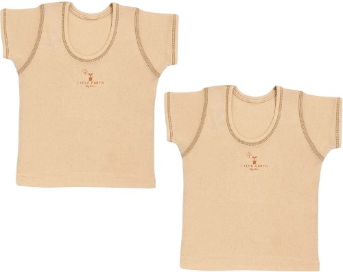 オーガニックコットン フライス 半袖シャツ 2枚組 (80cm, キナリ)