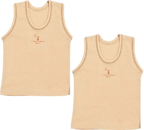 オーガニックコットン フライス 袖なしシャツ 2枚組 (90cm, キナリ)