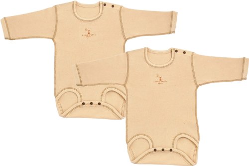 オーガニックコットン フライス 長袖ボディスーツ 2枚組 (90cm, キナリ)