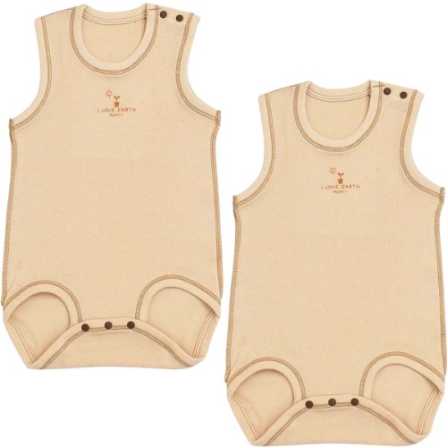 オーガニックコットン フライス 袖なしボディスーツ 2枚組 (80cm, キナリ)