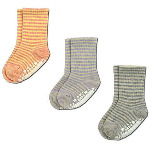 ベビー・ルーズソックス3足組・日本製 9-12cm オレンジボーダー、パープルボーダー、グレーボーダー