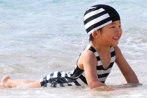 お揃いのグレコ水着・パンツ水着と合わせればかわいさUPです。