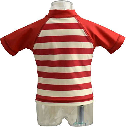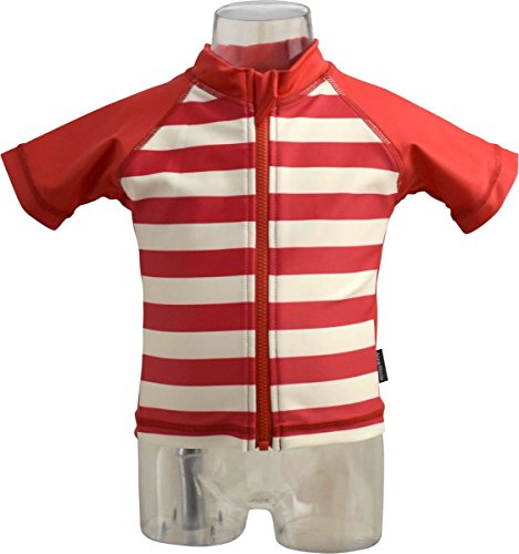 Anna Nicola(アンナニコラ) ボーダー柄 半袖ラッシュガードベビー水着 日本製 (90cm, レッド)