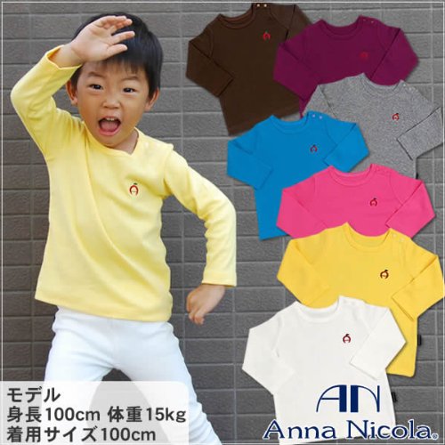 Anna Nicola(アンナニコラ) ベビー用長袖カラフルTシャツ りんご刺繍【ロンT】 (90cm,ビビットブルー)