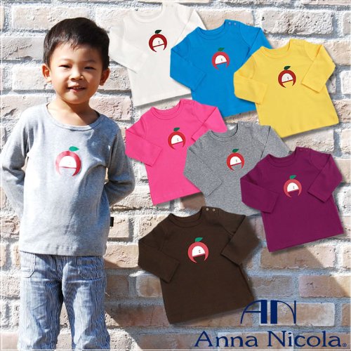 Anna Nicola(アンナニコラ) ベビー用長袖カラフルTシャツ りんごプリント【ロンT】 (80cm, バイオレット)