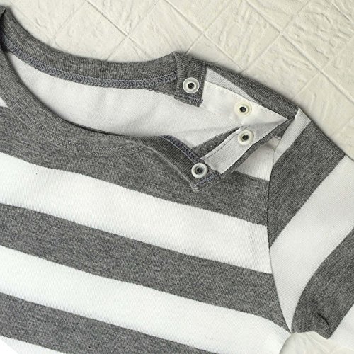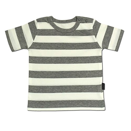 Anna Nicola(アンナニコラ) 太ボーダー半袖Tシャツ 日本製 グレー×オフ 100cm