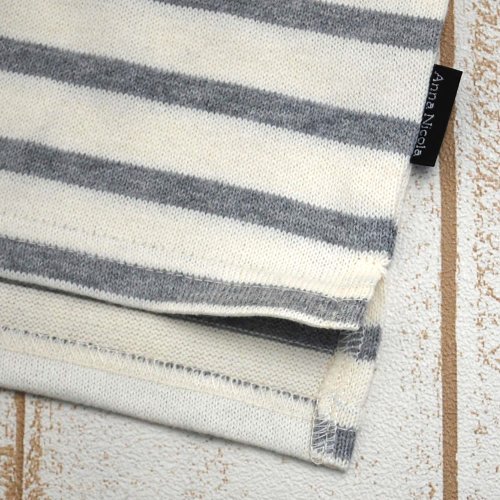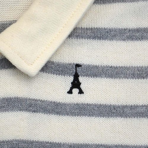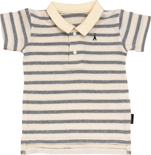 Anna Nicola(アンナニコラ) ベビー用半袖ポロシャツ ボーダー柄 (80cm, オフホワイト×グレー)