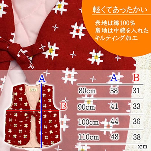 和風キルトベスト マリメッコ柄 ベビー&キッズ 日本製 (90cm, オレンジ)