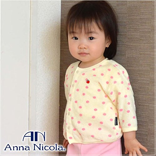 Anna Nicola(アンナニコラ) シンカーパイルカーディガン 水玉柄 (60-70cm, グリーン×グレー)