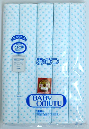 布おむつ 水玉柄10枚セット 33×70cm 仕立て済み 輪おむつ (サックス)