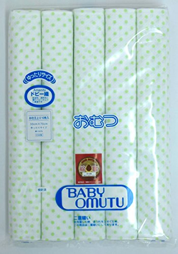 布おむつ 水玉柄10枚セット 33×70cm 仕立て済み 輪おむつ (グリーン)