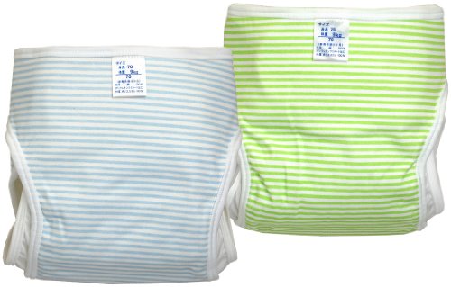 村信 日本製 2枚組 ボーダー柄 綿おむつカバー(後ろ留めタイプ) 70cm サックス JF202B