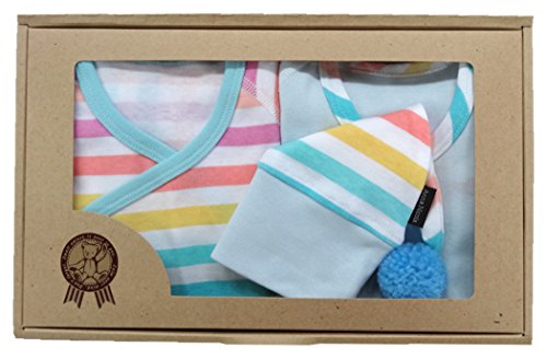 村信 アンナニコラ 新生児衣料ボーダー ギフトボックス 短肌着&コンビ肌着&帽子 サックス GBD-48