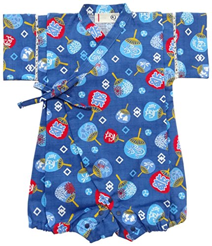 村信 とんぼ&花火柄 甚平風ロンパス 70cm サックス 71698 日本製