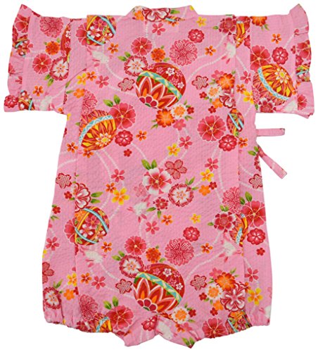 村信 桜とマリ柄 甚平風ロンパス 女児 ピンク 70cm 71745 日本製