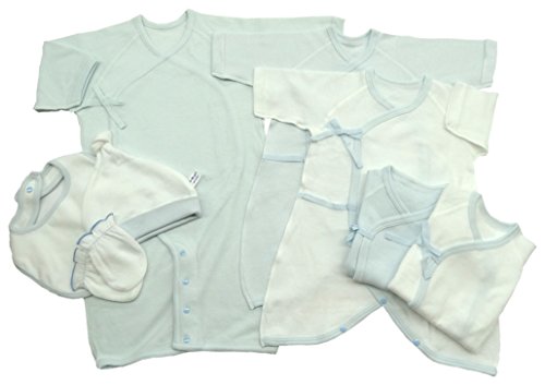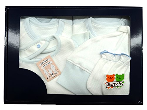 村信 ラ・モルフェ 新生児衣料 ギフトボックス 短肌着&コンビ肌着&2WAY肌着&ミトン&スタイ&帽子 サックス エアーニット素材 GB-L1301-8