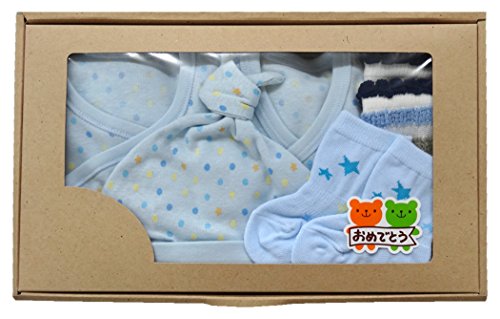 村信 新生児衣料 ギフトボックス 短肌着&コンビ肌着&帽子&レッグウォーマー&ソックス サックス GB-SF1501-5