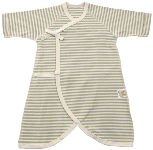 オーガニックコットン フライスボーダー コンビ肌着 50cm グリーン MIO11041 日本製