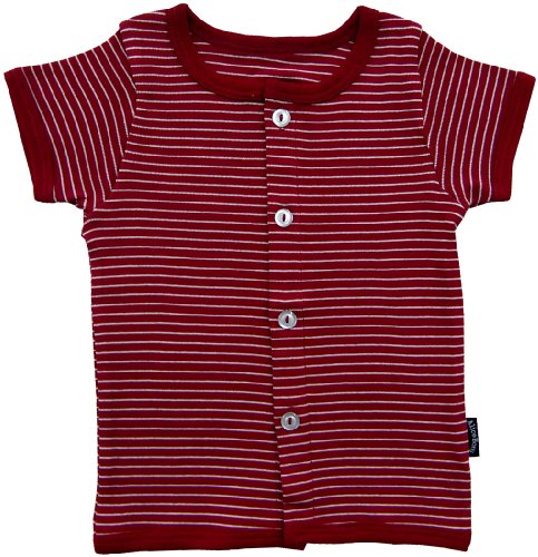 アリスボニー ボーダー柄半袖前開きシャツ 60cm エンジ Z16102 日本製
