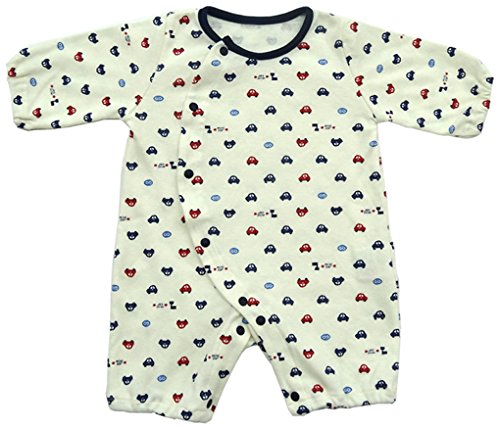 村信 スムース プチカバーオール くるま柄 60cm アイボリー 71665 日本製